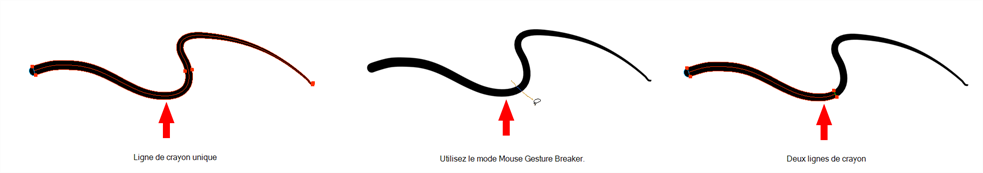 When using the Lasso selection type, the Use Mouse Gesture Breaker Mode option lets you draw an invisible stroke on a pencil line to cut it in two individual objects. Once a pencil line is cut with this option, you will be able to select the two portions independently with either the Cutter tool, Pencil Editor tool or Select tool.