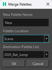 When you select the Scene palette location, the existing palettes in your scene will appear in the Destination Palette List prompting you to combine them with your new palette. Should you select the Element palette location, the merged palettes will appear as a new palette in the palette list.