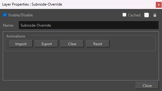 Click the yellow square on the Subnode Override node to access the Subnode Override Layer Properties.