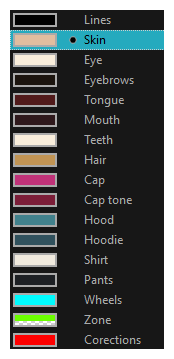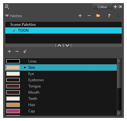 通过向每个角色、道具或特效分配一组颜色来创建色板。您将创建一个新色板,并为角色的各个区域(如皮肤、头发、舌头、衬衫、裤子等)添加新的颜色,这些颜色也称为色卡