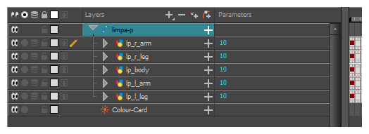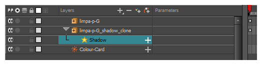 - 在“时间轴”视图中,选择角色克隆的根图层。