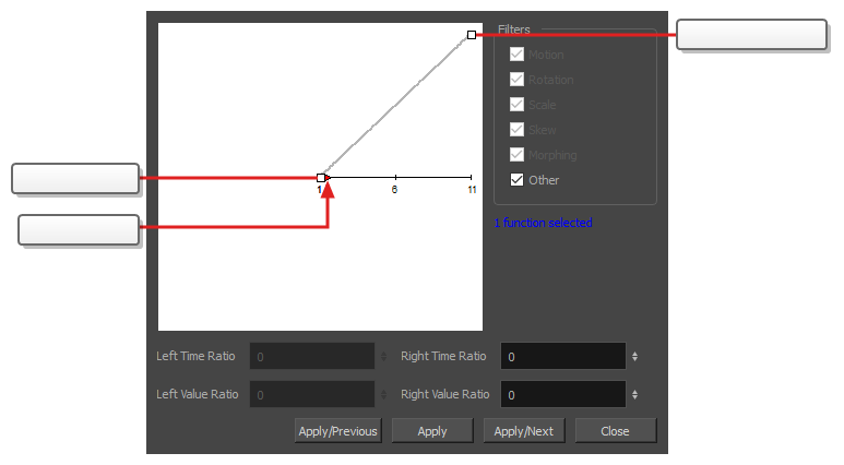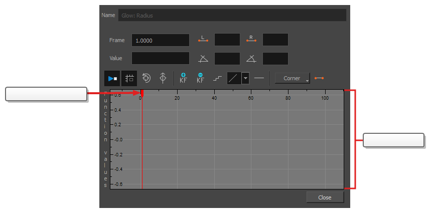 您可以使用这个对话框为该函数添加动画。底部的函数图用于显示场景中每个帧的函数值。