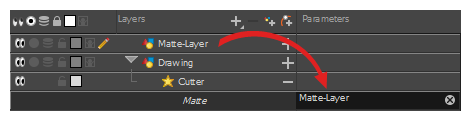 将蒙版图层拖放到参数列下方的“裁切器”图层的蒙版字段旁。
