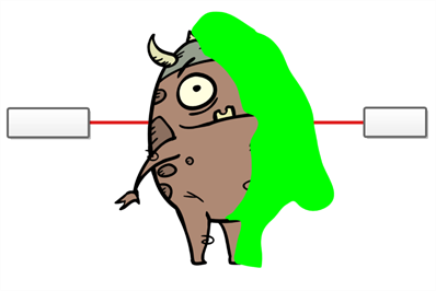 “裁切器”特效用来裁切掉图像的一部分。为此,需要将裁切器连接到要裁切的绘图以及蒙版图层。裁切器将利用蒙版图层中绘图的形状,并从绘图图层裁切出该形状。如果希望让角色在背景元素之间消失,或者希望在角色中间裁切出一个孔,此特效尤其有用。