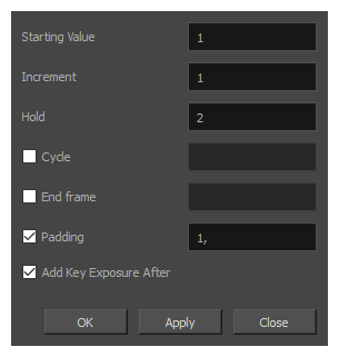 - 打开“摄影表”视图菜单,然后选择“曝光”>“序列填充”。