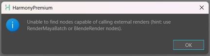 在“缓存管理器”中,可以从下拉列表中选择 Maya 批量渲染或 Blender 批量渲染节点。选择后,将会显示正在 Harmony 中渲染的源 3D 元素和外部项目路径。