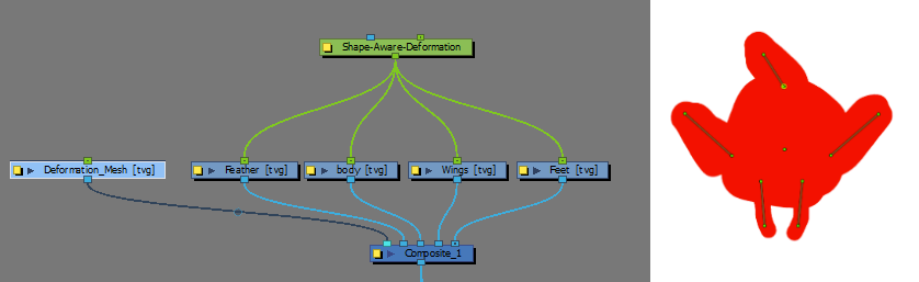 将“图像”节点中的剪影绘图连接到“形状感知变形”上。