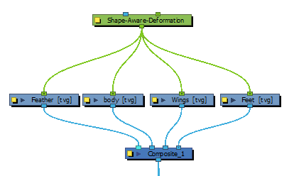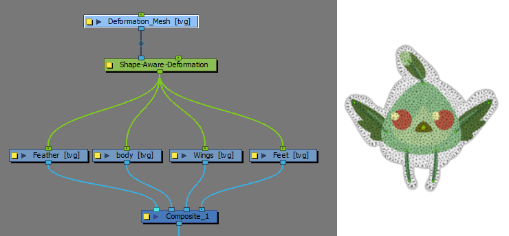 这样,“形状感知变形”就可以将全局网格应用到“形状感知变形”节点下链接的众多绘图。这种效果便于利用相同的“变形网格”对多个绘图进行变形,或利用更具体的“变形网格”提供变形位图。
