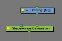 “形状感知变形”有一个辅助输入,如蓝框所示。该输入允许变形器使用蒙版作为“变形网格”的参考。“形状感知变形”通过将绘图转化为蒙版,在所提供的蒙版绘图(而非下方绘图)周围创建变形网格。