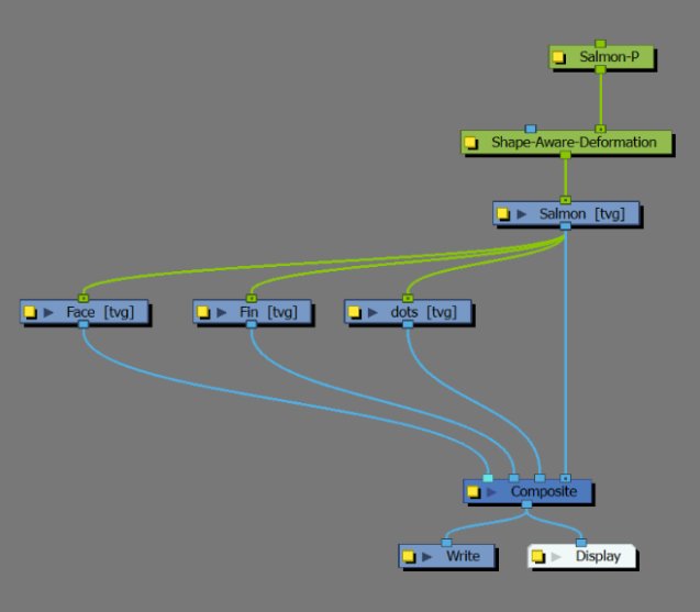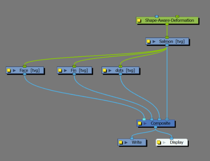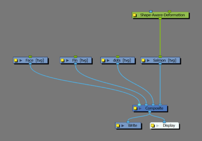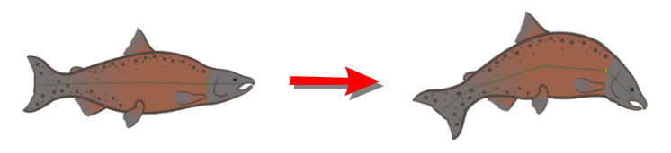 下图显示了一条鱼的变形。鱼是主要的形状,纹理、脸部和侧鳍的绘图叠放在上面。