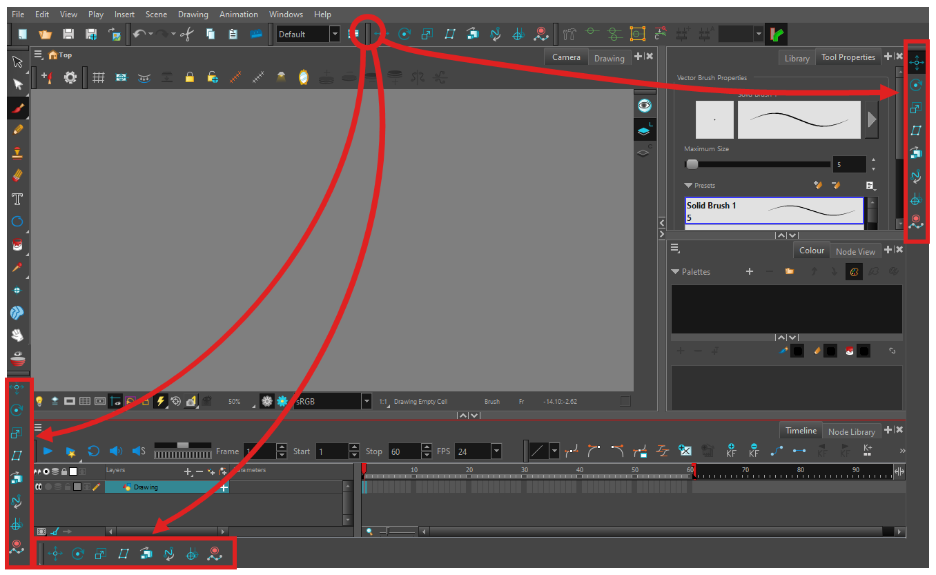 “工具”工具栏包含在 Harmony 中工作所需的主要工具。在默认工作区,该工具栏位于应用程序窗口左侧。