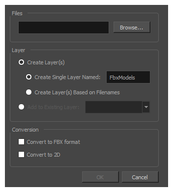 在 Maya 和 Blender 中创建的任何 3D 对象都可以导入 Harmony 场景中。导入 3D 对象的方法主要有以下两种: