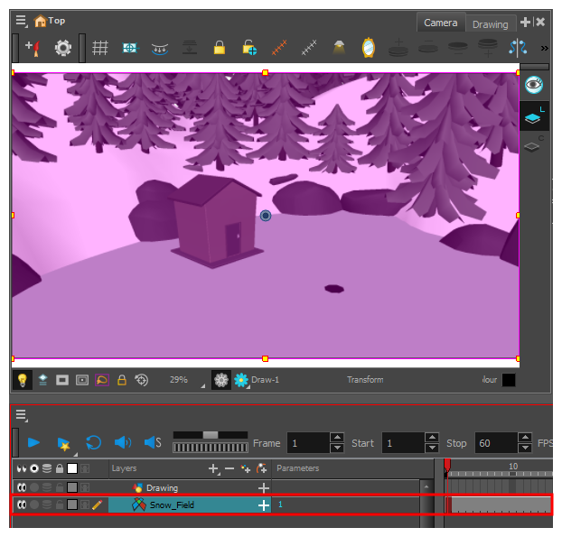 • 渲染为 2D 图层:通过这种方法,您可以从固定的位置和角度渲染 3D 模型,并将其作为 2D 位图图层导入到场景中。如果您打算将 3D 模型作为绘制背景、角色或道具的参考,这种方法非常有用。它会使您的场景更加轻巧。