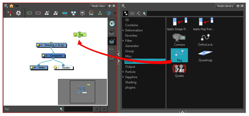 - 选择一个定位钉节点并将其拖动到“节点”视图中。也可以按 Ctrl + P (Windows/Linux) 或 ⌘ + P (macOS)。