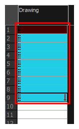 在新填充选定范围的最后一个单元格之后的帧上插入关键曝光。