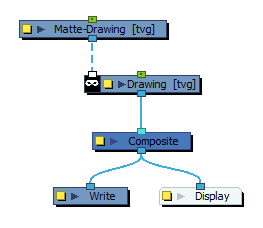 可以选择将蒙版绘图连接到元素节点的左边缘。当元素节点连接到蒙版绘图时,绘图中只有与蒙版绘图的不透明区域相交的部分才会被渲染。这种方式可以实现与将元素节点连接到裁切器节点相同的效果,而无需使用额外的节点。