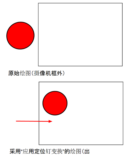 使用“应用定位钉变换”时,可以对位于摄像机框外部的绘图应用变换,使其显示在框内。