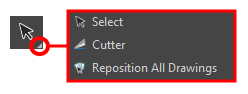 “工具”工具栏默认将部分工具隐藏在弹出菜单中。例如,要选用 “裁切器”工具,需双击或长按 “选择”工具按钮,然后在弹窗中选择 裁切器