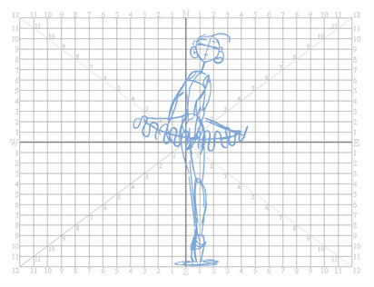 了解 Harmony 中的坐标值非常重要,它基于动画的原点。在传统动画中,场景的尺寸和摄像机运动以规格框 (field) 为单位计算。一个规格框的比例为 4:3,宽度为 0.5 英寸(12.7 毫米)。为此,系统创建了一个特定网格图,称为规格框坐标图。Harmony 的坐标系使用这种度量单位。