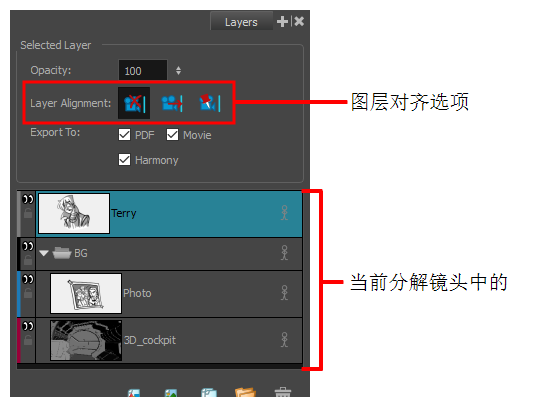 - 在“图层”视图中,选择要与摄像机对齐的图层。
