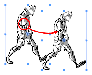 - 使用操作器框变换图层,使其成为动画开始时预期的位置、角度和大小: