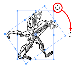 - 若要旋转图层,请将光标移动到操作器框的任意角落旁边,直到鼠标光标变为
