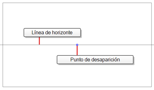 • La guía de perspectiva con 2 puntos le ayuda a dibujar líneas procedentes de uno de los dos puntos de desaparición, que se colocan en la línea de horizonte fuera del campo de la cámara. También le ayuda a dibujar líneas perpendiculares a la línea de horizonte.