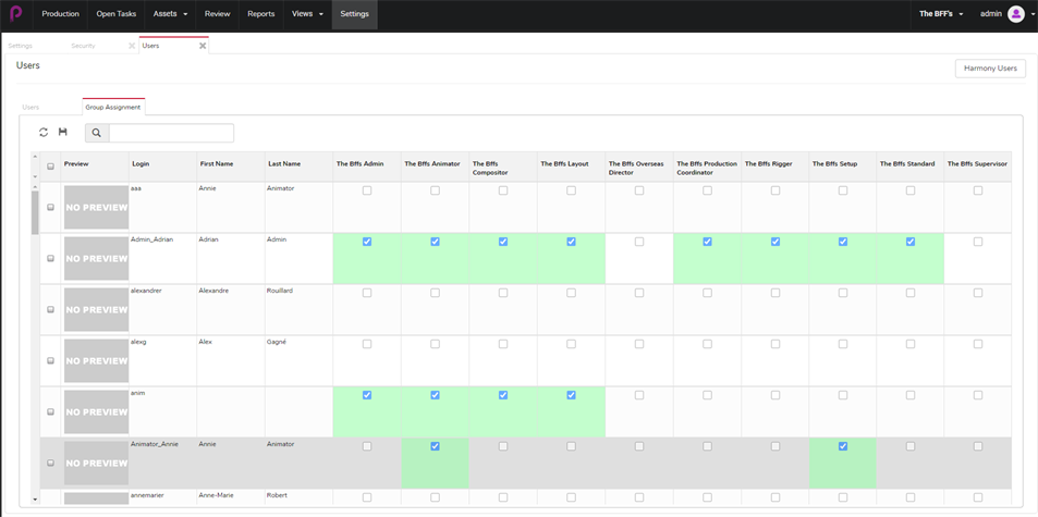 Un grupo tiene dos funciones principales. En primer lugar, sirve para asignar permisos a sus miembros, en el contexto de un proyecto. En segundo lugar, los grupos se pueden utilizar para facilitar la asignación de tareas. Por ejemplo, si se especifica que los usuarios del grupo de animadores son las personas asignadas habitualmente a la tarea “animación”, el supervisor de animación solo tendrá que elegir entre los usuarios que forman parte del grupo de animadores cuando asigne una tarea de animación.
