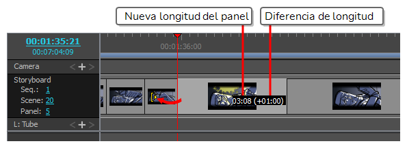 También es posible ajustar la longitud de un panel mientras se ajusta simultáneamente la longitud del siguiente panel para compensarlo. Así se evita que los paneles posteriores se desplacen y puede ser útil si necesita ajustar el tiempo de los paneles sin que afecte al tiempo del resto de la animática.