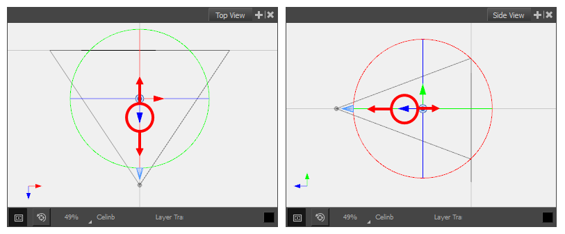 Cuando trabaje en 3D, puede utilizar la vista de escena para ver la escena desde cualquier punto de vista y cualquier ángulo, lo que le permite ver cómo se posicionan los objetos en el espacio, y la vista de cámara para ver la escena desde el punto de vista de la cámara. Sin embargo, es posible que a menudo necesite un control preciso sobre cómo se posicionan los objetos y las capas en el eje z.