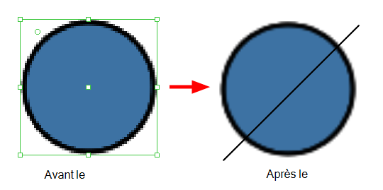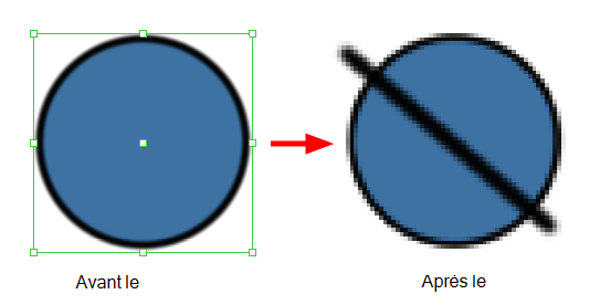 In the following example, a circle is scaled down. Then, when zooming in on it, it appears to have preserved all its precision. Right after drawing a short stroke on the drawing, it is sampled down to match the layer's pixel density: