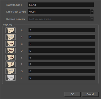 - Click the Map button to open the Lip-Sync Mapping dialog box.