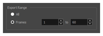 - Select Frames if you want to render a part of your scene. Then, in the field to the right, type in the first frame of the sequence you want to export, and in the other field, the last frame of the sequence you want to render.