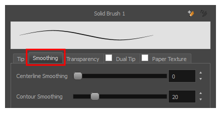 The Smoothing tab contains options to configure how Harmony should automatically smooth your brush strokes as you paint.