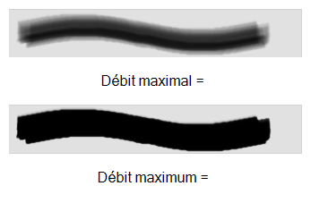 • Maximum Flow: Sets the maximum rate at which colour and texture are applied as you create a fluid stroke.