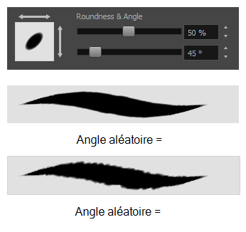 • Angle: The angle at which to rotate the brush tip, counterclockwise.