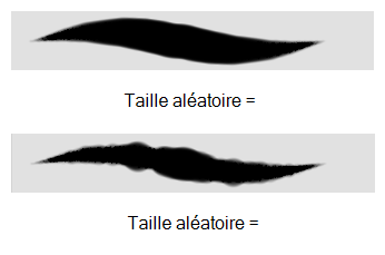 You can create variation between the thick and thin of your brush stroke just by setting the Maximum and Minimum Size values. If you add randomness to the mix, pressure sensitivity from your drawing tablet will still be applied. Light pressure will create random values around the minimum, while heavy pressure will create random values closer to the maximum. The larger the percentage, the larger the range of random variation.