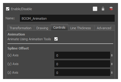 Animate Using Animation Tools: By default, a drawing layer can be animated directly, as if it was its own peg. If you disable this option, it will only be possible to animate the layer using its parent peg. If the layer has no parent peg, it will be immutable. This can be useful if you want to create cut-out character rigs that should only be animated using pegs, which can help separate the drawing exposure from the transformations on the drawings. If every drawing layer in a character rig has this option disabled, only layers that have a parent peg will be animatable, and the animator will only be able to animate on the pegs. This also rules out the possibility of accidentally animating an element directly and using its parent peg concurrently. When this option is disabled, clicking on the drawing layer in the Camera view with the Transform tool will automatically select the layer's parent peg. |