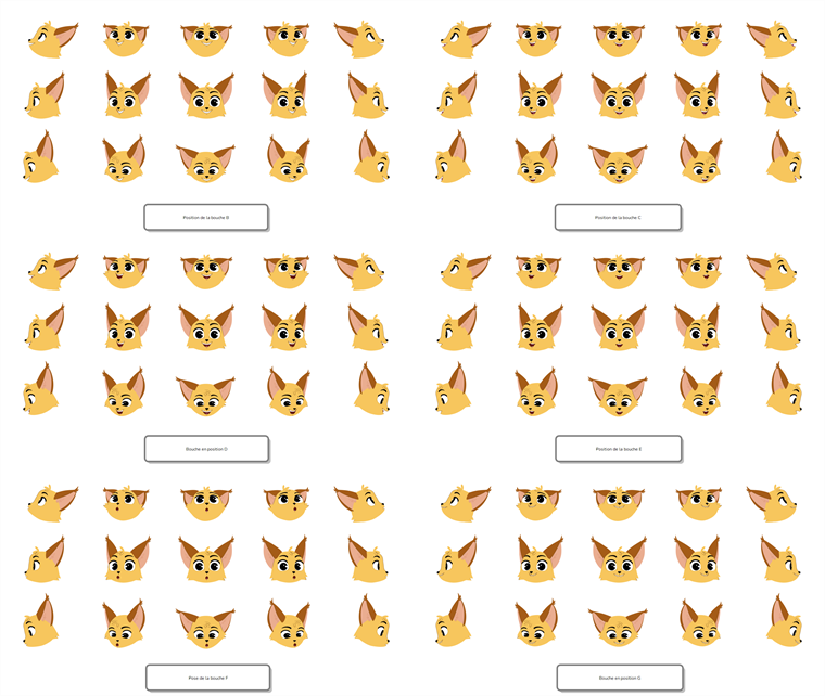 You can accomplish this by creating a series of head poses of your character looking in every direction, which would be used for the base grid, and then create a variation of all of these head poses for each mouth pose you want your character to have. Stacked together, the base grid and all of its variations would make a cube, hence the name Stack.