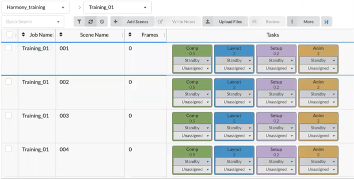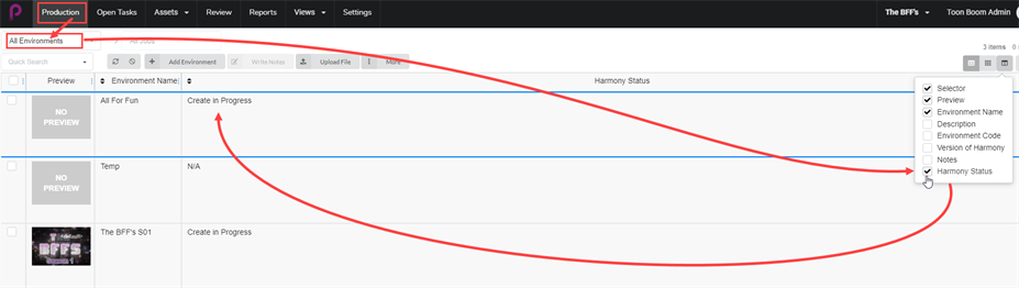 - Une fois les plans créés dans Harmony, retournez dans Producer et dans le menu principal, sélectionnez Production.