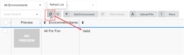 L’État Harmony est mis à jour sur Valide. Le nouvel environnement apparaît maintenant dans Harmony Server ou restera dans la file d’attente jusqu’à ce qu’il y ait une connexion correcte à Harmony Server.