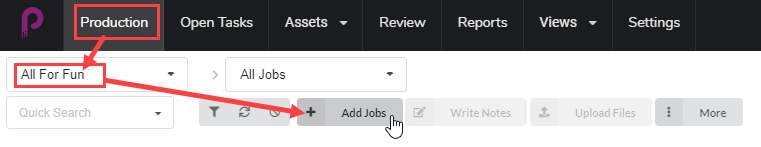 - Dans la barre d’outils de l’onglet Production, cliquez sur le bouton Ajouter des jobs.