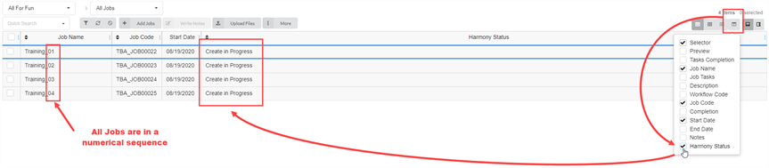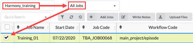 - Dans la liste des jobs qui apparaît, sélectionnez les jobs pour lesquels des plans ont été créés dans Harmony en cochant les cases correspondantes.