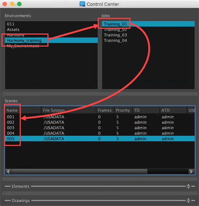 Pour que ce processus fonctionne, les noms de l’environnement et de job doivent correspondre à la fois dans Harmony et Producer.