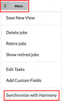 - Dans la barre d’outils de l’onglet Production, sélectionnez Plus > Synchroniser avec Harmony.