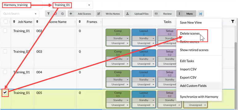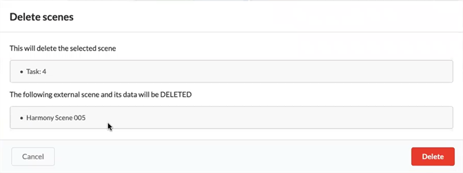 Les plans sélectionnés sont supprimés à la fois de Harmony et de Producer.
