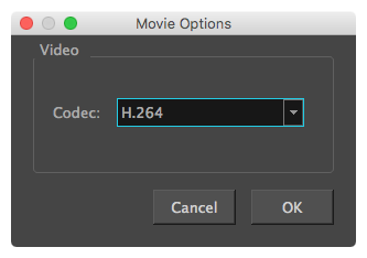 Contrary to Windows, Storyboard Pro uses its own user interface to let you configure the compression settings for QuickTime Movies on macOS. Using this interface, you can choose to export your movie using either the H.264, the Apple ProRes 422 or the Apple ProRes 4444 video codec.