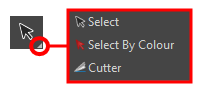 By default, the Tools toolbar hides some of its tools inside pop-up menus. For example, to select the Cutter tool, you must double-click or long-click the Select tool button, and select Cutter in the pop-up menu.