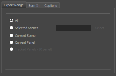 The Export Bitmap window lets you export a storyboard project to bitmap files in .jpg, .tga, .psd or .png format. The exported data includes a separate bitmap file for each panel in the storyboard.