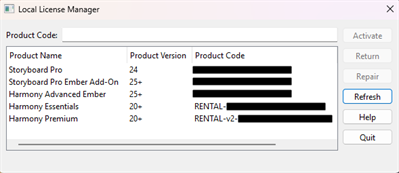 Refresh: Update the Local License Manager to be synchronized with your Toon Boom account.